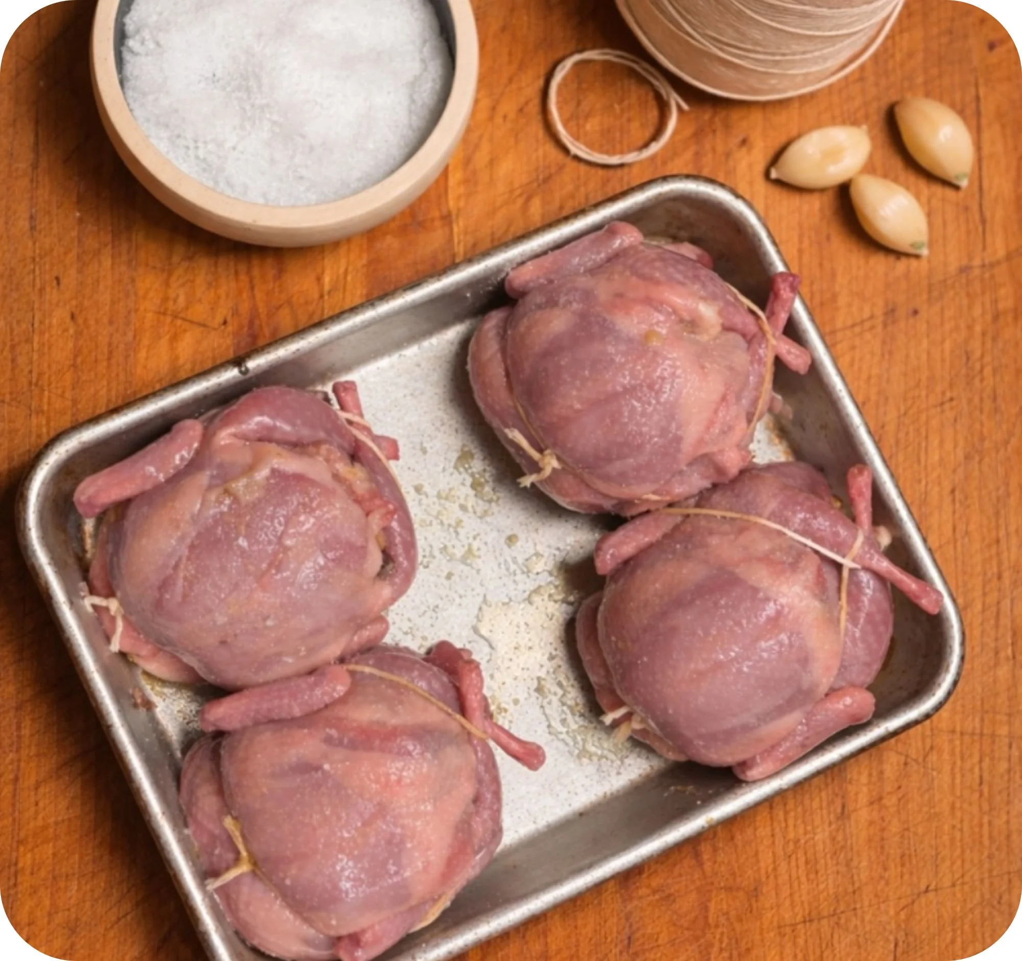 For this recipe, I used Manchester semi-boneless quail. For my customers, I bring these in fresh from my purveyor. You can certainly ask your local butcher to get them for you, or source them directly from the producer here: https://manchesterfarms.com/